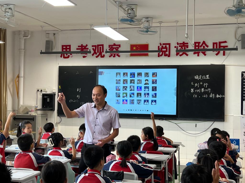 黄贵仕老师与四(7)班的孩子们给大家带来了一节精彩的数学课——《确定位置》。