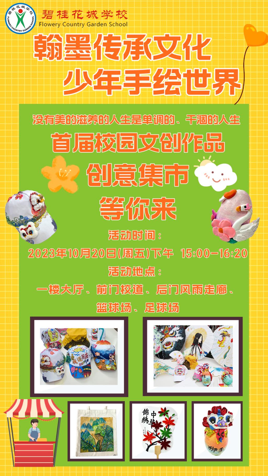 蘸创造之笔墨,书文化之华章。为落实“五育并举”,弘扬传统文化,提升学生的审美和劳动实践能力,培养学生的创新发展能力,碧桂花城学校在十月份开展了首届校园文创设计大赛活动。花城学子怀以满腔热血,积极参与文创制作。这或许是始于一瞬的奇思妙想,却能让历史久远的文化重焕生机。件件精美作品接连完成,让我们用全新的方式重新认识了熟知的文化;亦让学生真心感受校园五彩纷呈的文化,徜徉于中华文化长河。