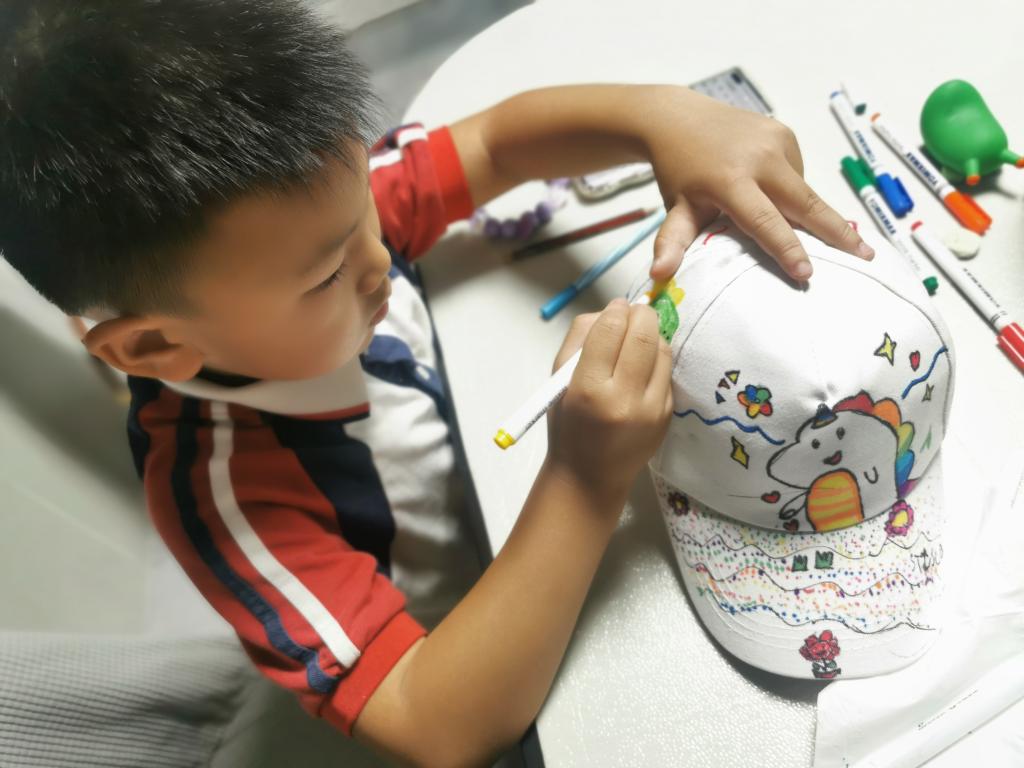 二年级学生在本次手绘帽子的制作过程中,大胆想象,精心设计装饰帽子的图案,灵活应用绘画技巧和手工制作技能,将帽子的图案绘制得五颜六色、形态各异。这次活动,既培养了学生美术创造力,也锻炼了他们的动手能力和想象力。