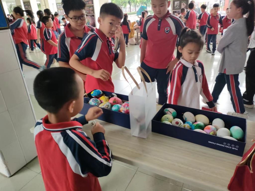 彩蛋象征着新生命的开始,是表达友谊、关爱和祝福的方式。一年级的孩子们在老师指导下了解彩蛋的寓意,学习绘制技能,欣赏了形式各样的彩蛋图案。国庆期间,孩子们凭借着天马行空的想象力,创作了一个个栩栩如生的彩蛋作品,有的画国旗庆祝祖国生日,有的画国宝熊猫迎亚运,有的画嫦娥姐姐迎中秋……小小的蛋壳画好似浓缩的世界,寸间千里、咫尺万变。