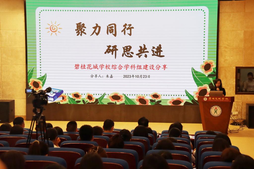 最美好的生活方式,莫过于一群志同道合的人,为同一理想而奔跑。碧桂花城学校的综合组是由多个学科组成的优秀团队。他们虽然教授的学科不同,但在工作中却能求同存异,凝心聚力,团结协作,共同创造了一个又一个辉煌的成绩。为促进科组交流,展示学科组建设成果,2023年10月23日,综合学科组组长朱嘉老师向全校老师分享了科组建设经验。