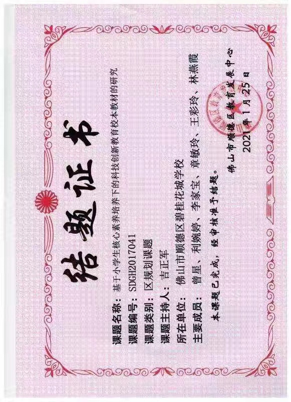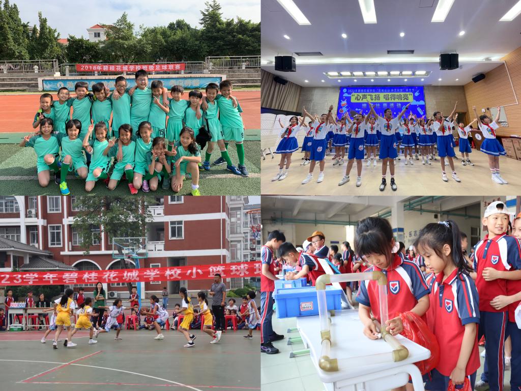 这是一支有思想、有担当、业务精湛、充满活力的高素质专业化教师队伍,其中吉正军主任为碧桂园教育集团科学学科带头人,张峰老师为碧桂园教育集团美术学科带头人,彭金婷老师为碧桂花城学校音乐学科带头人。在老师们多年努力下,我校被评为全国艺术教育特色单位、全国足球特色学校、全国写字教育实验学校、广东省书画教育特色单位、广东省篮球项目推广学校、顺德区中小学书法教育特色学校等。