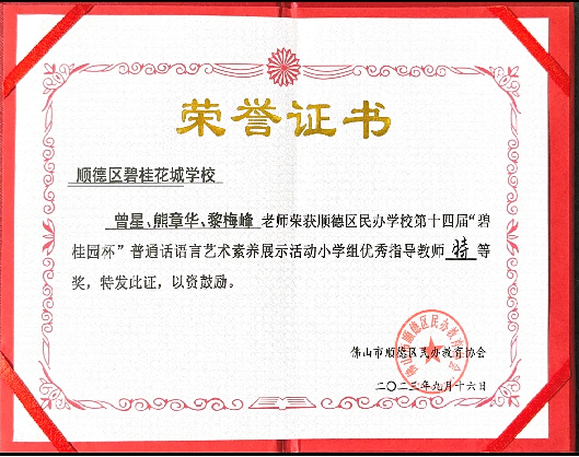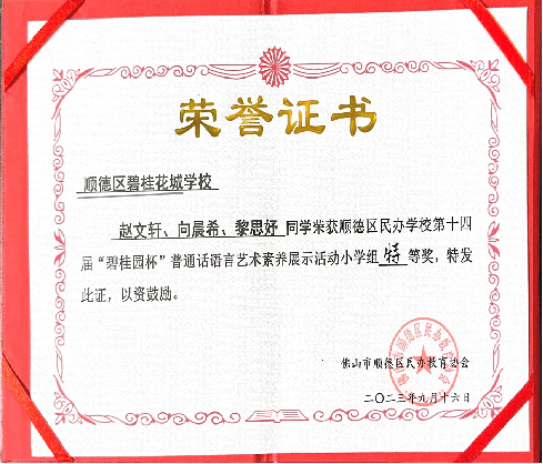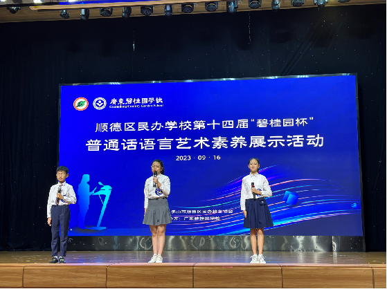 在第十六届碧桂园杯普通话大赛中,我校派出由三名选手组成的参赛队,以超强的应变能力及超赞的表现力,获得了现场评委的一致好评!获得了特等奖的好成绩!