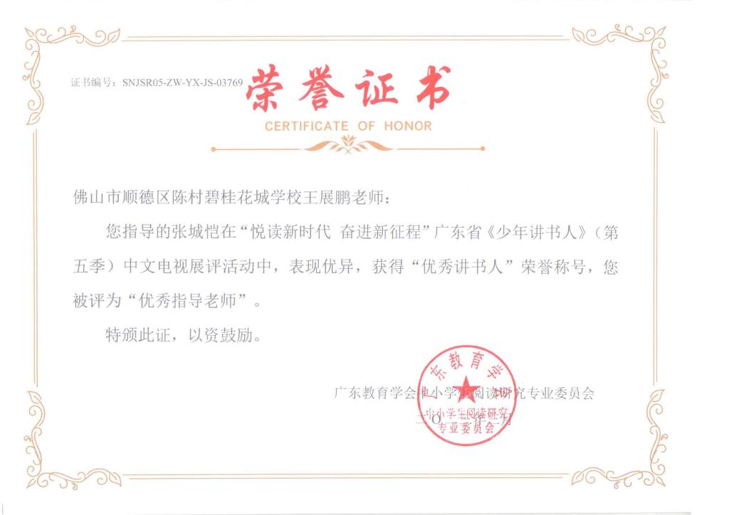 一年一年的坚持、积累、积淀,形成了人人爱书、人人读书的书香校园;历经探索与实践,2010年,碧桂花城学校被评为“全国特色语文示范校”。