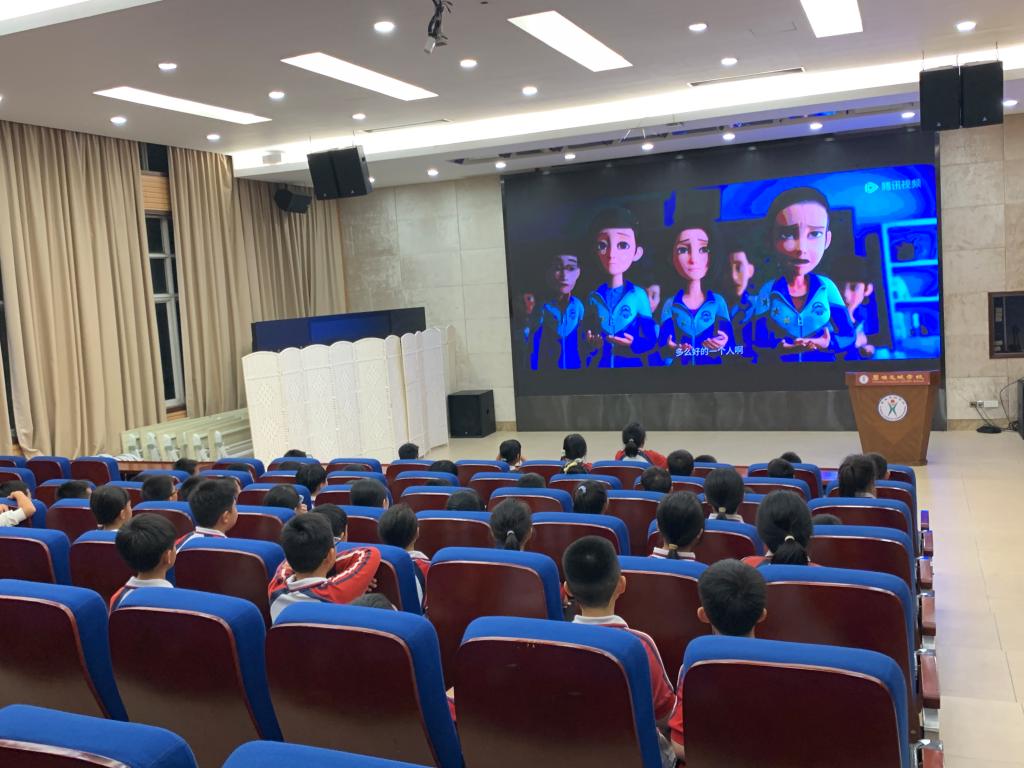 2023年11月9日晚,学术报告厅内光影闪烁,一双双小眼睛被精彩的大屏幕深深吸引。在花城学生综合素质评价体系的激励下,当晚,德育处组织了一至六年级部分优秀学生、各班十月“健体星”观看影片《茶啊二中》。