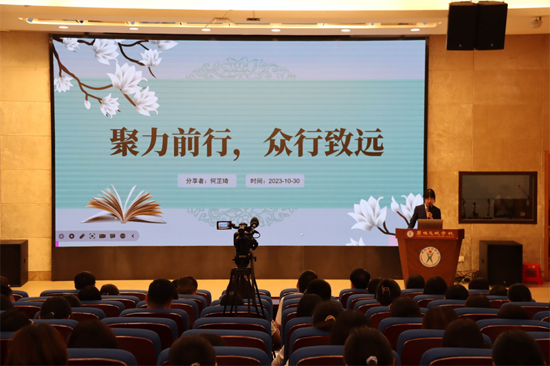 一个人可以走得很快,但是,一群人,一群心怀同一个梦想的团队才能走得更远。孤举者难起,众行者易趋。为达成“以赛促教,以赛促研”的目标,2023年10月30日,英语学科组何芷琦老师以一名协助参赛者的视角,从赛前准备、赛中准备以及赛后复盘这三方面向全校老师进行了精彩的经验分享。