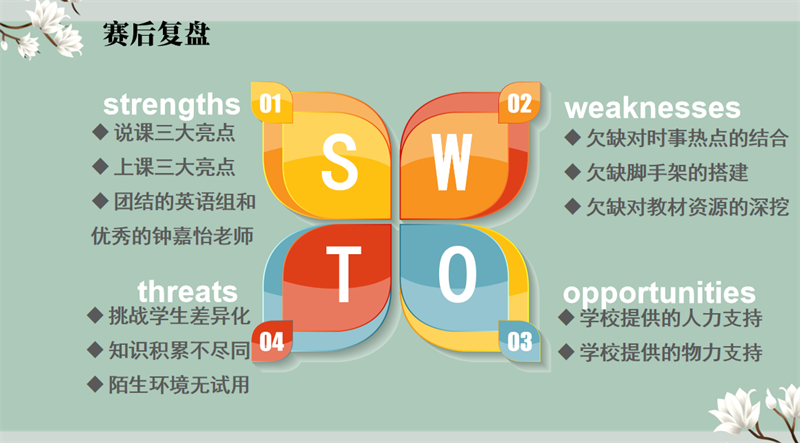 比赛结束之后,智囊团运用了SWOT分析法来对此次比赛进行了复盘。