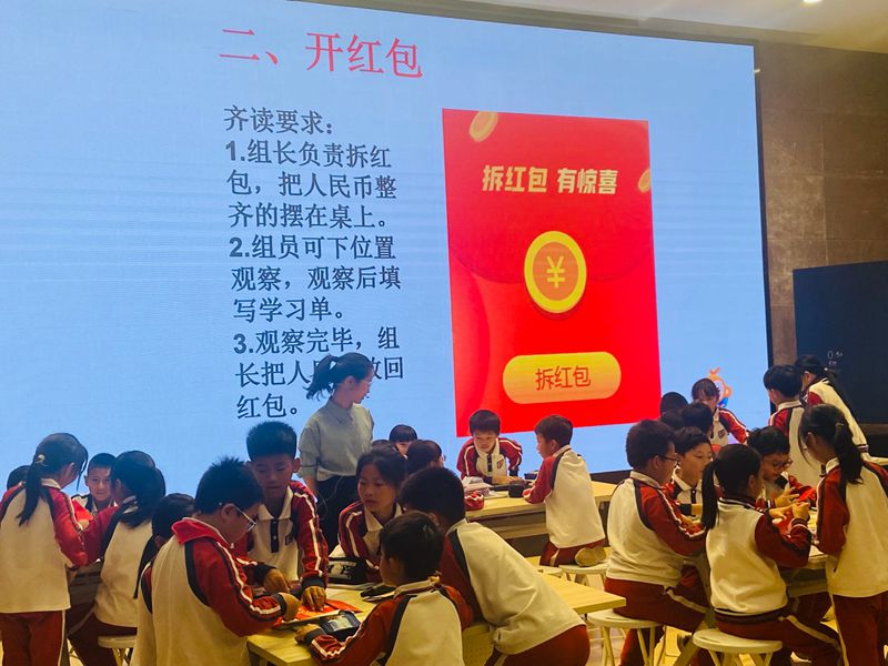 陈莹用师生互动形成板书,鼓励学生自编小数,明确小数的准确读和写,用调查单互相交流、互读小数,拆红包填表格、抽选礼物大派送等一系列活动,激发了学生学习兴趣。