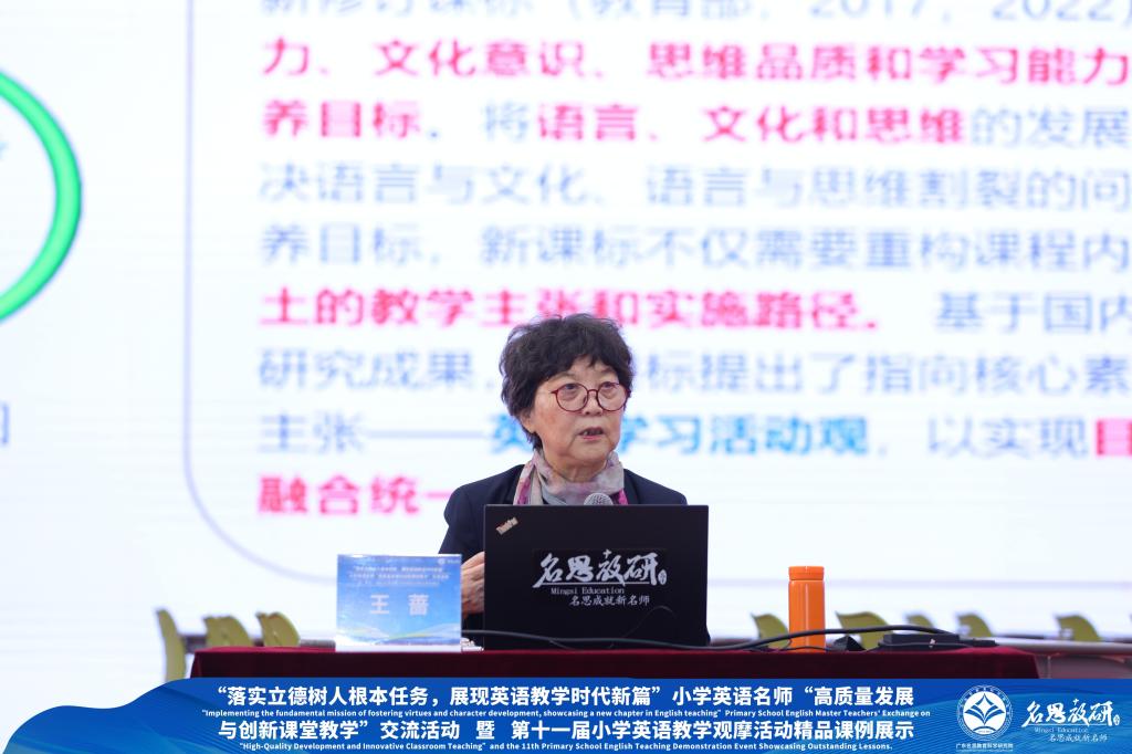 王蔷教授围绕着《践行英语学习活动观,落地核心素养培养目标》的主题为老师们带来一场案例丰富、语言生动的讲座。王教授从英语学习活动观的内涵和特征,到三个构成要素:学习理解、应用实践和迁移创新,再到英语学习活动观与其他教学方式的比较。由理论到实际的案例分析,为教师们变革学习方式,重构课堂生态捋清思路。
