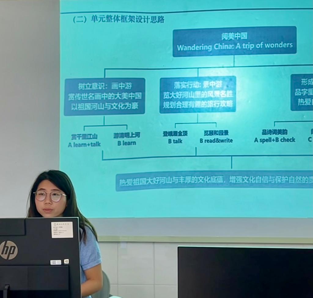 11月30日,此行教师代表王榕苗老师在英语组内进行学习分享。王老师从用英语讲好中国故事和跨学科教学这两方面来分享自己的理解和收获。王老师认为在英语教学中,老师们可以结合佛山的特色来进行文本重构并加入历史、数学、语文等知识进行教学,以此来提高学生们的思维品质和文化意识,发展学生的核心素养,并使中华文化得以传承和发展。
