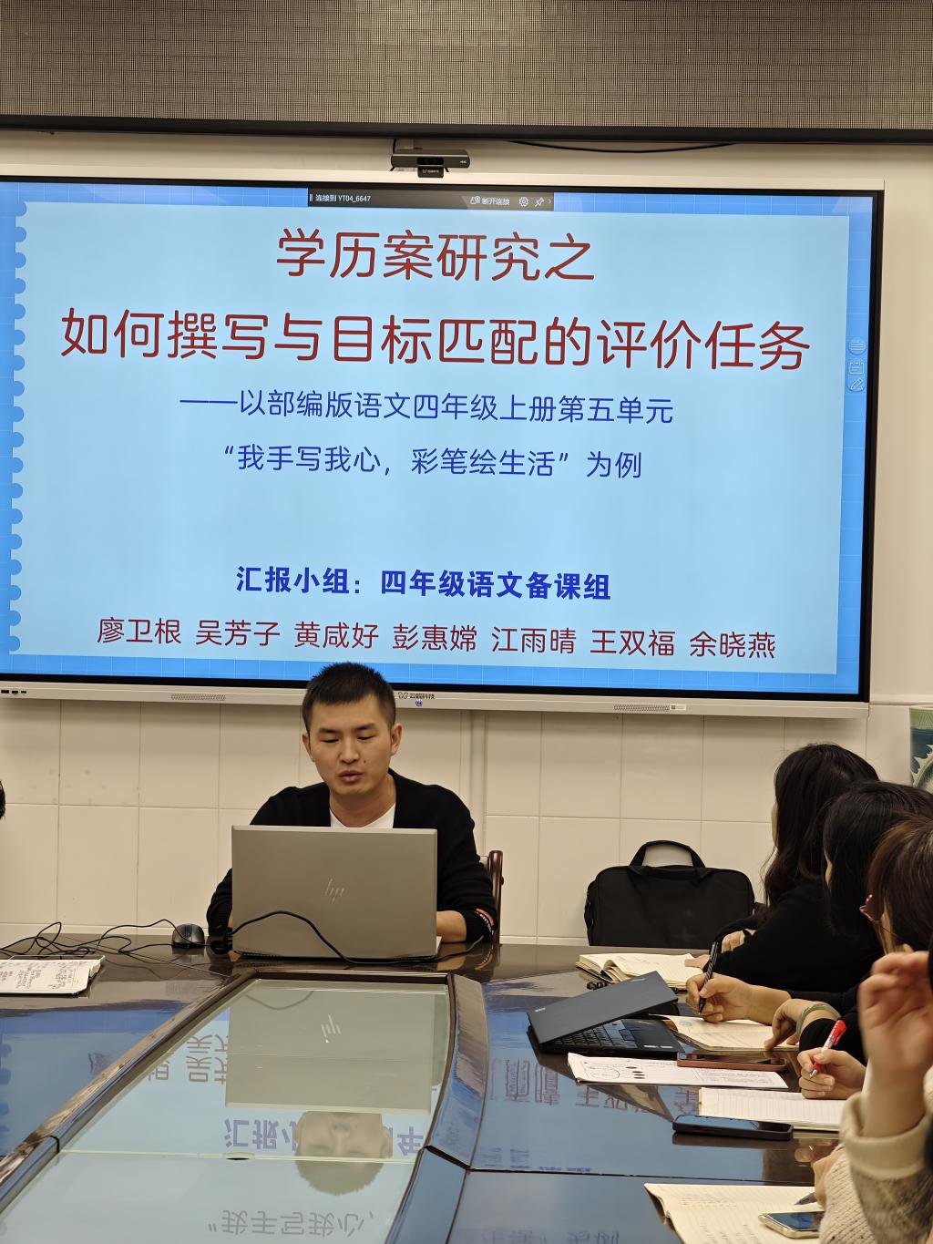 新课标强调课堂教学要实现“教——学——评”一致性。四年级备课组围绕“如何撰写与目标匹配的评价任务”开展了研究。黄咸好老师分享了研究心得:
