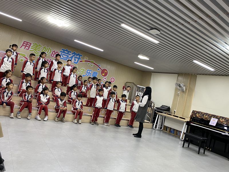 音乐课上,彭金婷老师带领同学们演唱《共产儿童团歌》。她在课堂上灵活运用唱、听、动、想、说,并结合肢体动作让学生唱准低音和高音,用模仿、对比让同学们在实践中去感受和学习,也让同学们了解了儿童团员的辛苦和勇敢。
