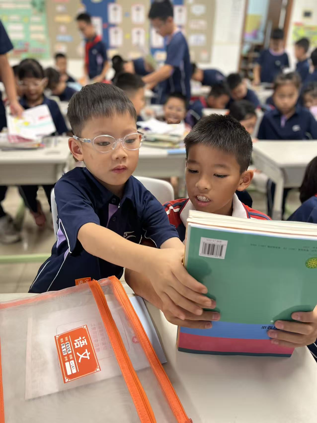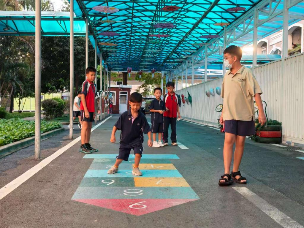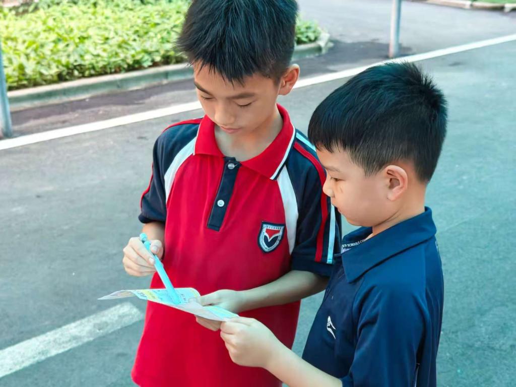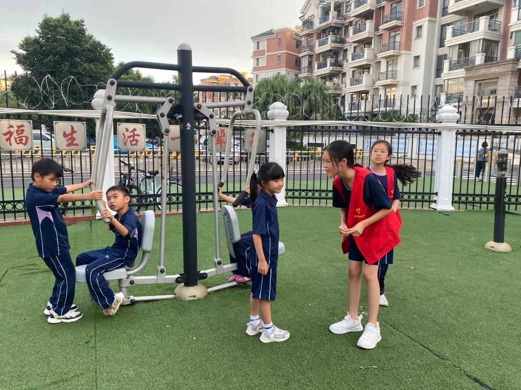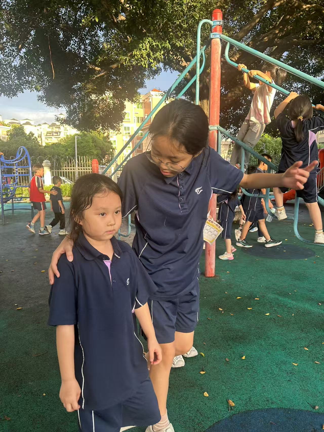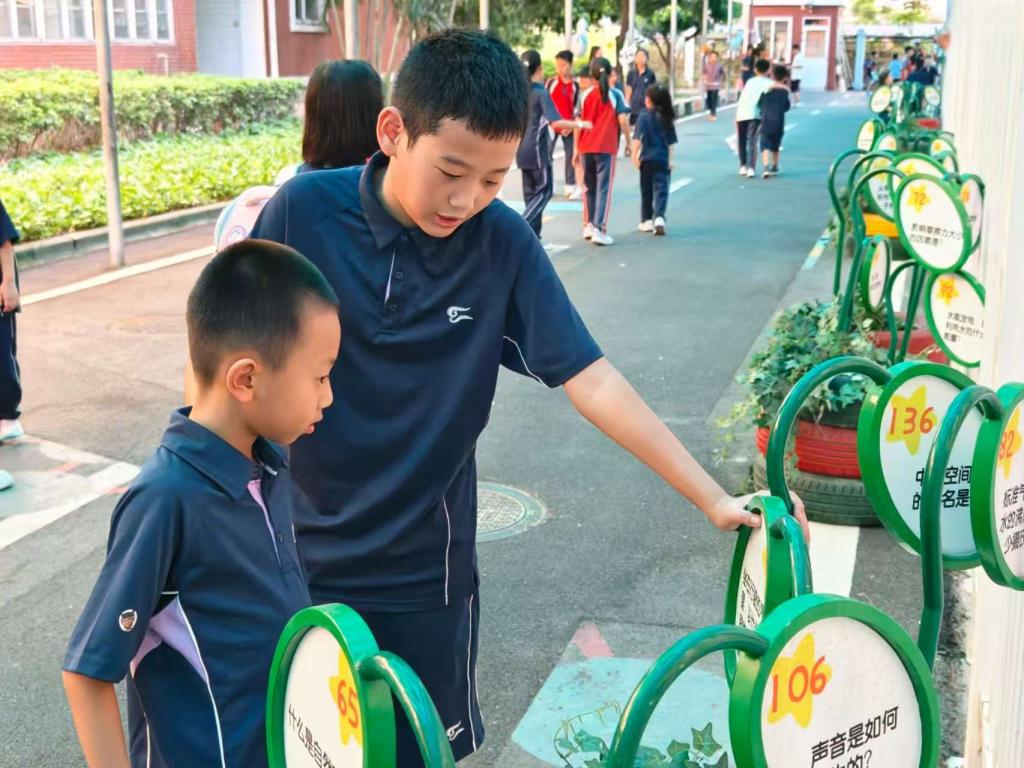 9月9日至11日晚饭后,校园各活动区域迎来了结对伙伴的欢声笑语。在游乐区,五年级学生耐心示范如何安全使用滑梯、秋千等设施;在健身区,他们指导正确的运动姿势;在风雨走廊,组织了跳格子、趣味接力等传统游戏;在花坛旁,带领观察植物、开展有趣的互动小游戏;在科技长廊,讲解墙面科技展品的原理;在阅览区,教授如何正确取阅书籍。每一个场景都充满了学长学姐的关怀与新生们的好奇探索。