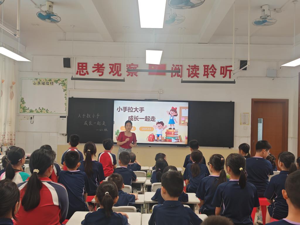 2025年9月5日至19日,我校成功举办“小手拉大手,成长一起走”一年级与五年级结对互助活动。本次活动通过跨年级结对的形式,让五年级学生带领一年级新生熟悉校园环境,培养良好习惯,传承红领巾互助精神,共同营造温馨、有序、互助的校园氛围。