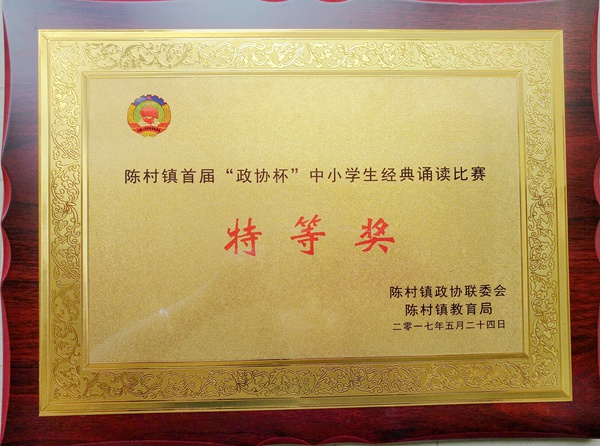 陈村镇首届“政协杯”中小学生经典诵读比赛特等奖
