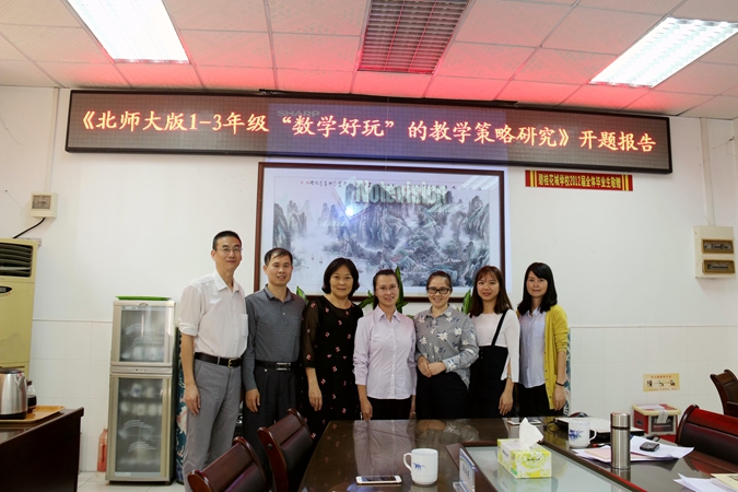 2017年10月23日,陈村镇中心教研组组长欧焕银、陈村镇中心教研组成员潭村片片长王丽婵、陈村镇中心教研组成员石州片片长冯镜标组成专家组,出席了我校 《北师大版1-3年级“数学好玩”的教学策略研究》课题的开题报告会。