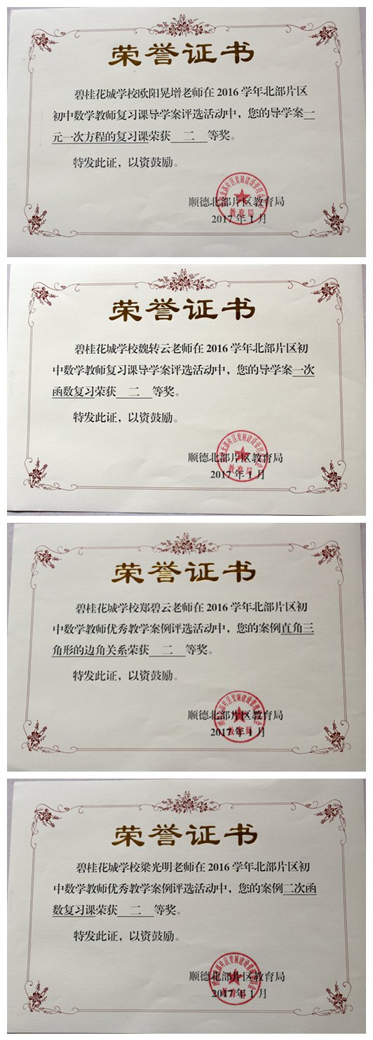 欧阳晃增、魏转云、郑碧云、梁光明四位老师在2016学年北部片区初中数学教师复习课导学案评选活动比赛中荣获二等奖!