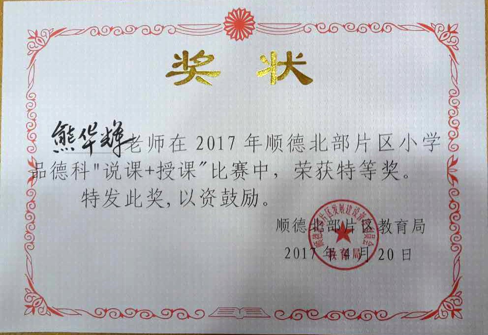 熊华辉老师在2017年顺德北片区小学品德课“说课+授课”比赛中荣获特等奖!