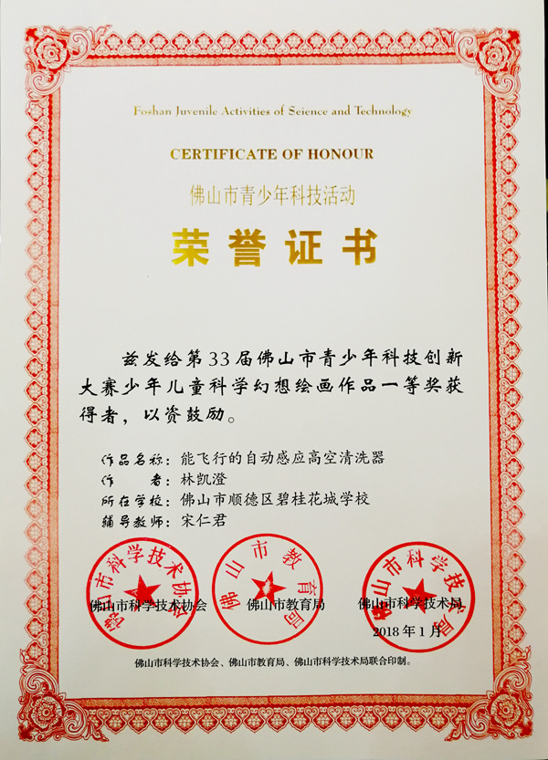 林凯澄同学在第33届佛山市青少年科技创新大赛科幻画比赛中获一等奖!