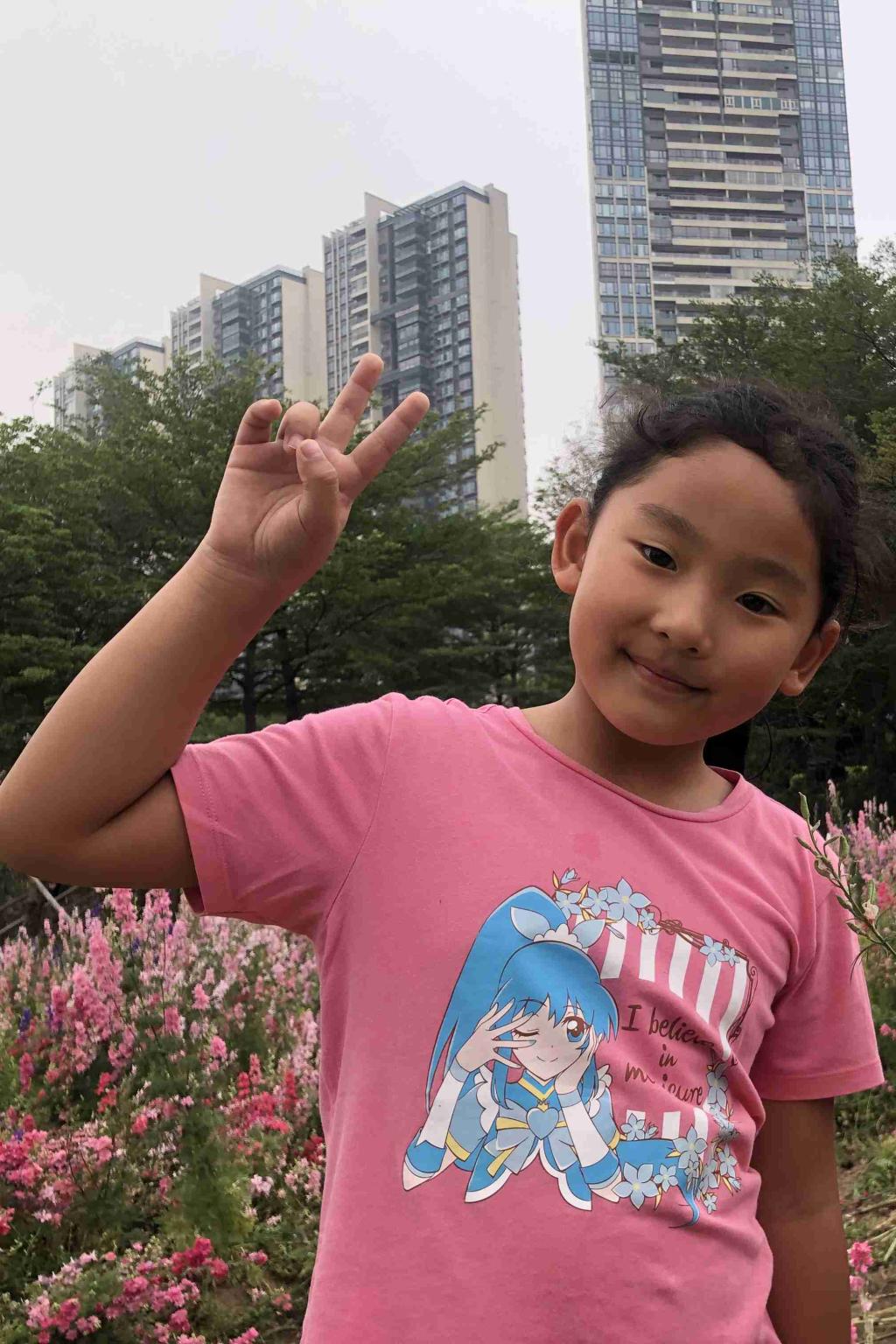 Michelle,一(2)班同学。开学一个月才加入这个大家庭的她迅速融入了这个大集体并很快的适应了班级生活。她上课坐姿端正,回答问题积极主动;她课间和同学相处融洽,迅速地收获了一批好朋友。她认真积极的学习态度是同学们学习的榜样。