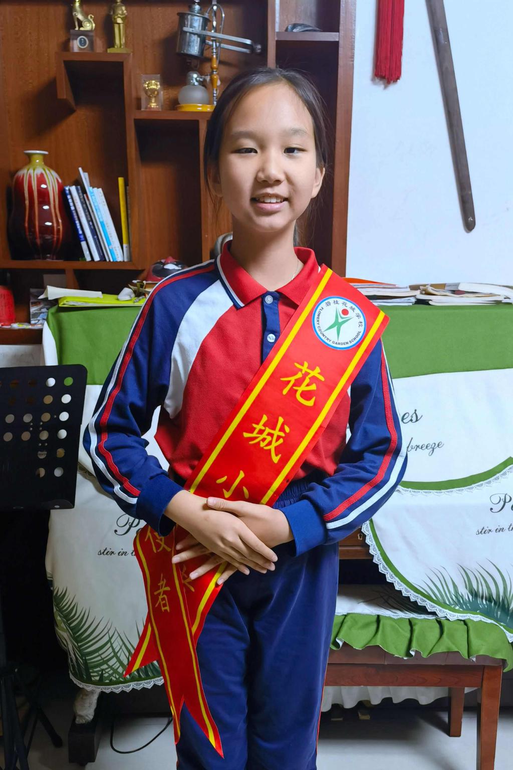 何凯馨,五(2)班学生。她是一位有责任心的学生,老师交代的事情,她会尽职尽责地完成。她兴趣广泛,喜欢通过阅读来增长知识。除此之外,她还喜欢弹钢琴和画画。