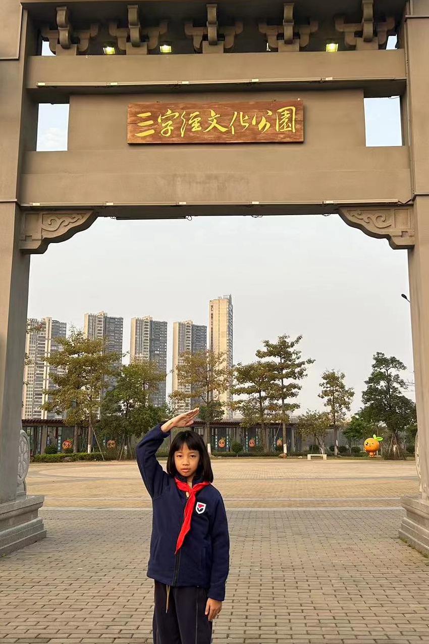 邓凯琳,三(2)班学生。她有一双善于发现美的眼睛,她总是把我们的校园拍得那么美丽、生机勃勃,我们总是能随着她的镜头认识到校园和校园之外的美好。她积极参加社会实践活动,从中开阔了眼界,锻炼了才干,学到了许多新的本领。